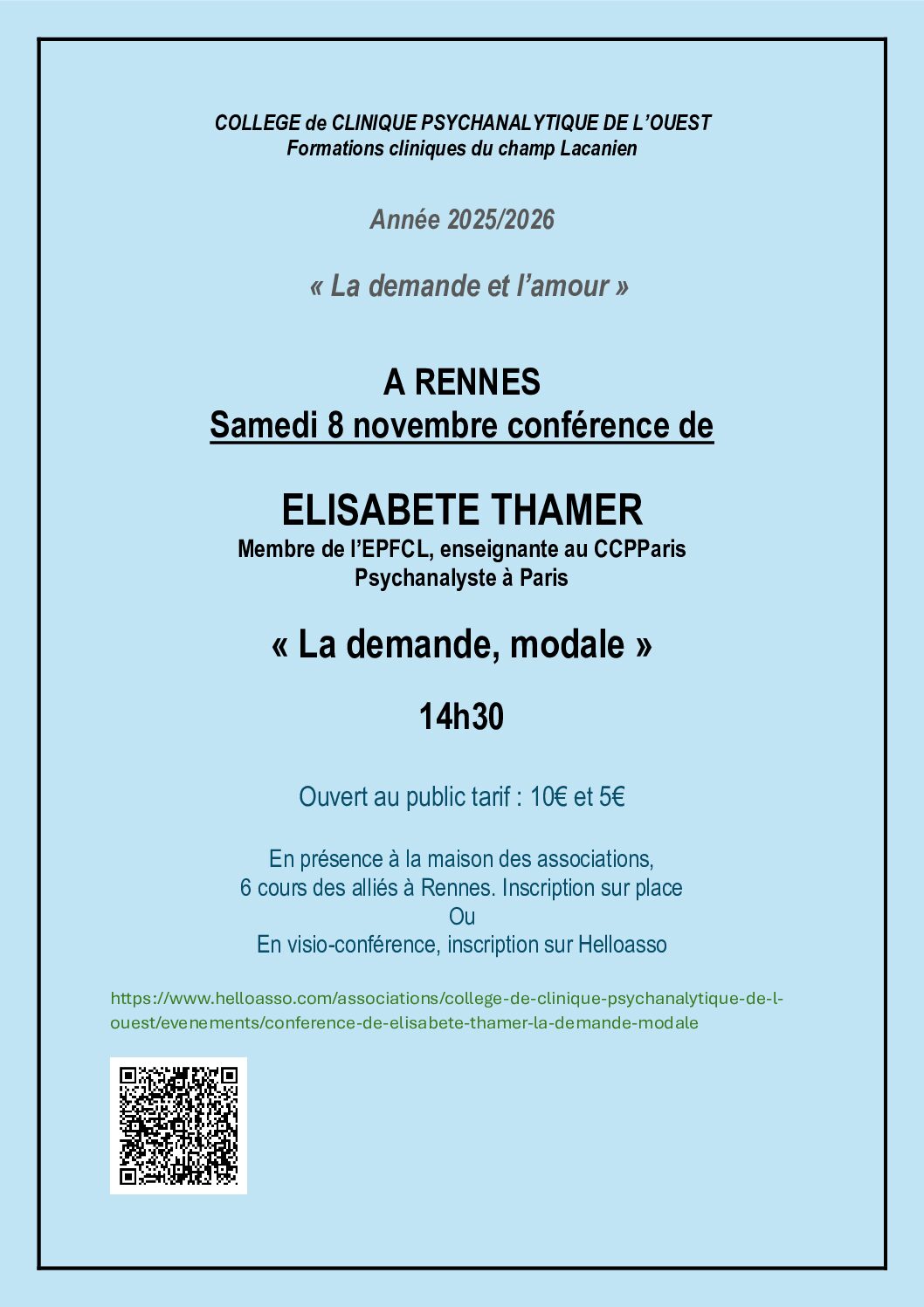 Le traitable et l’intraitable dans la clinique Date & Heure : 13/03/26 09:30 Ville : Paris et en Visioconférence En savoir +