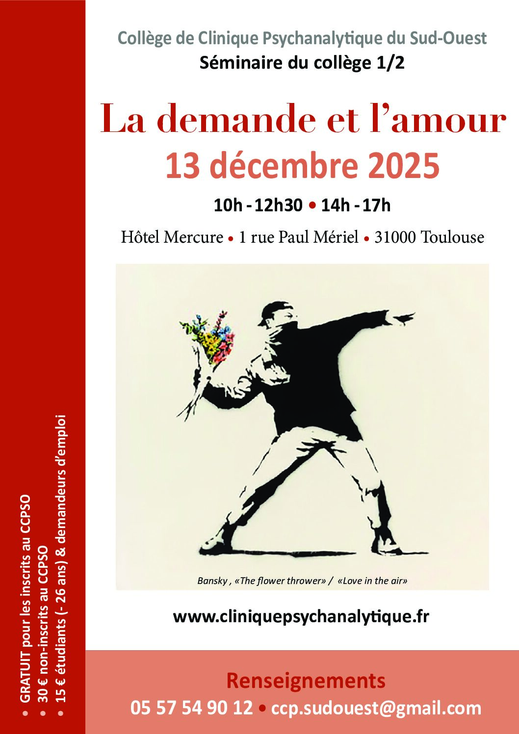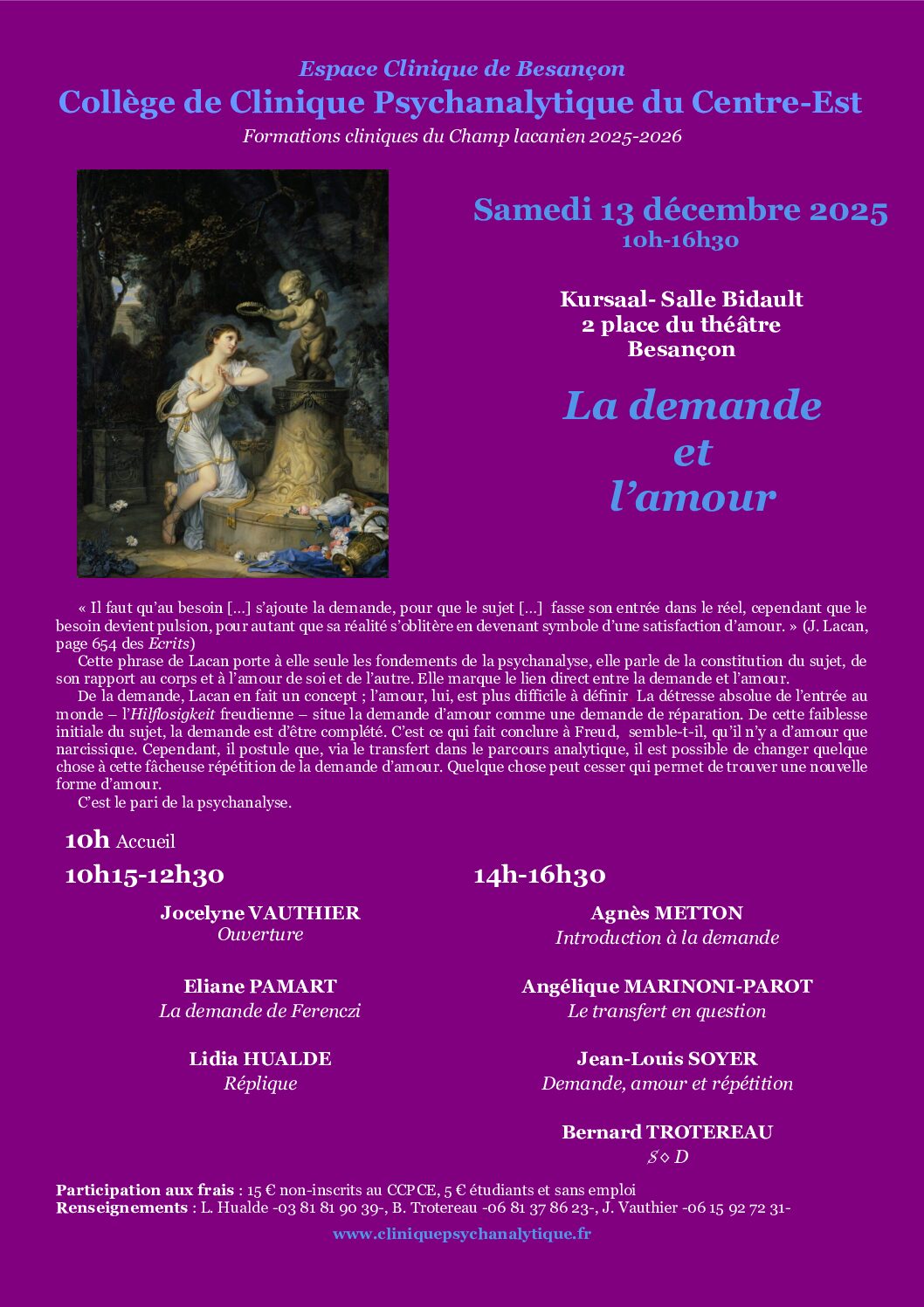 Le traitable et l’intraitable dans la clinique Date & Heure : 13/03/26 09:30 Ville : Paris et en Visioconférence En savoir +